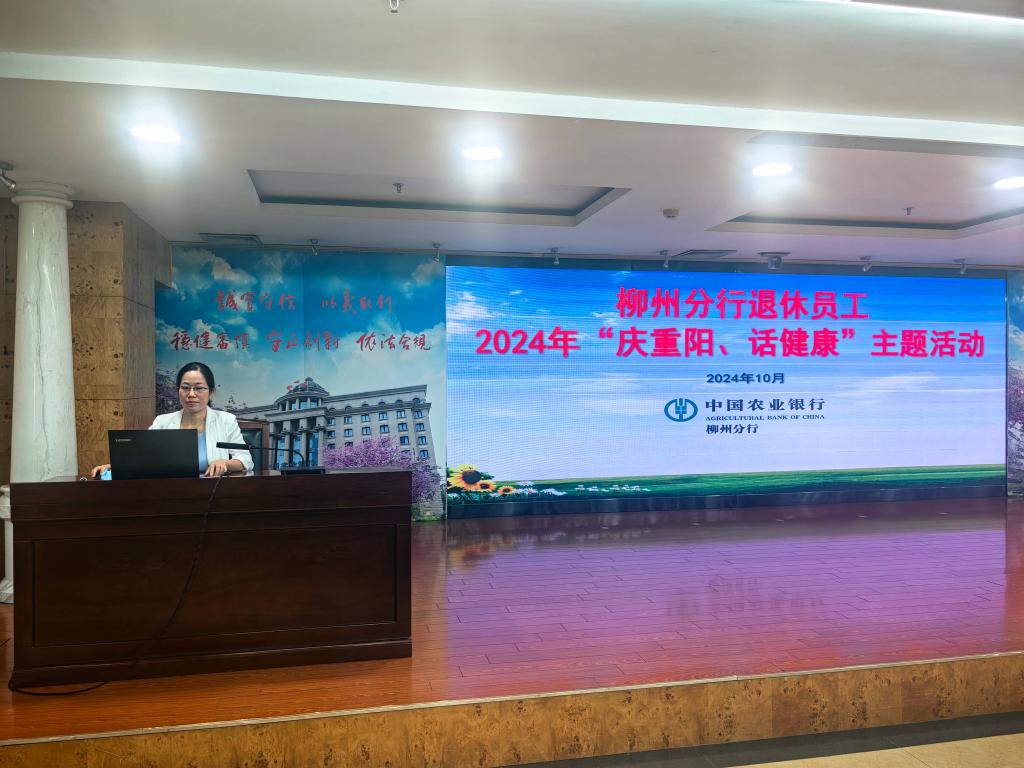 10月10-11日,柳州市人民醫院聯合農業銀行柳州分行開展“慶重陽 話健康”主題活動,卒中中心腦心健康管理師樊金花副主任護師為退休職工進行了主題為《腦卒中的預防與急救》的宣講,講解了卒中的相關危險因素及老年人預防卒中的措施,介紹了突發腦卒中的急救知識,幫助退休職工們提高急救意識,掌握基本急救技能。