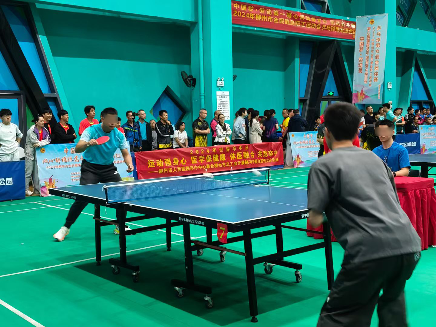 10月26日,柳州市全民健身職工運動會乒乓球比賽項目上,柳州市人民醫院卒中中心聯合市總工會別出心裁地策劃了一場以“運動強身心 醫學保健康 體醫融合 共防卒中”為主題的宣傳義診活動。