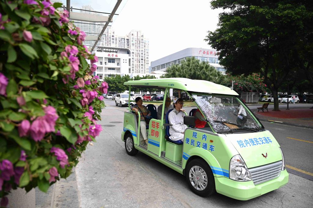 便民交通車服務能方便患者及家屬進入院區后盡快到達診療區域,進一步提升醫院的服務質量和就醫體驗。在原先僅1輛燃油擺渡車的基礎上,醫院新增的2輛新能源便民交通車更為綠色環保,能夠為乘客提供更加安靜舒適的乘車體驗。