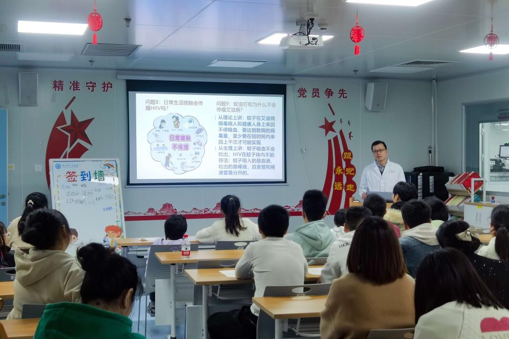 在科普講座環節,由柳州市“百佳醫師”、柳州市人民醫院感染性疾病科莫勝林老師為孩子們帶來以“艾滋病防治知識”為主題的科普講座,通過問答題形式講述了艾滋病的危害、傳播途徑和防范方法等,提高了孩子們的健康意識和自我保護意識。