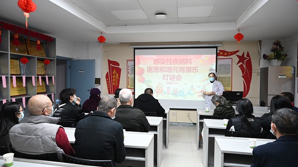 在感染性疾病科,一場別開生面的“元宵猜燈謎”活動正在進行。活動現場布置得簡潔而溫馨,燈謎內容涵蓋健康知識、節日習俗等,既有趣味性又具教育意義。