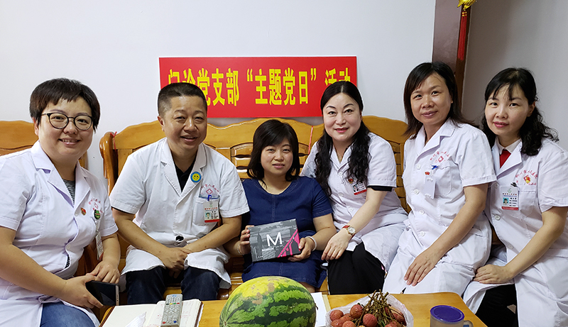 志愿者們首先針對袁茵今年5月在我院免費體檢時發現的一些健康問題作了詳細地解答和健康指導,教她如何在日常生活中合理搭配平衡膳食,最后還親切地和她拉起了家常。在了解她的成長過程、生活和工作情況后,大家都被她堅韌不拔、敬業奉獻、誠實守信的精神所感動,臨走時為她送上黨員同志們精心準備的一份愛心禮物。