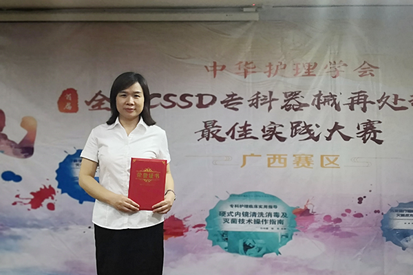 為了進一步促進《硬式內鏡清洗消毒及滅菌技術操作指南》《眼科手術器械清洗消毒及滅菌技術操作指南》《外來醫療器械清洗消毒及滅菌技術操作指南》在全區的推廣、貫徹和落實,由中華護理學會主辦的首屆《專科器械再處理指南最佳實踐》大賽已在全國各地如火如荼地開展。廣西賽區總決賽于4月27日拉開序幕,我院供應室副護長宋朝暉參加了廣西賽區總決賽。經過激烈角逐,我院參賽作品《動力工具清洗的循證實踐》在區內29支參賽隊伍中榮獲三等獎。
