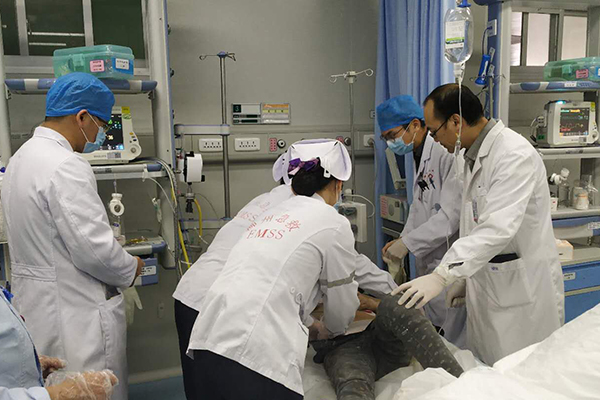 熱鬧的新年,歡樂(lè)的笑語(yǔ),一切都是那么的美好,然而總是有那么一些意外與不幸發(fā)生。大年初六,與喜慶氣氛的街頭相比,急診科的“熱鬧”顯得格外與眾不同。當(dāng)日中午13時(shí)左右,隨著一陣急促的呼嘯聲,柳城120救護(hù)車送來(lái)一名車禍外傷的中年男性患者,他全身多處開放性損傷,右側(cè)顳頂至右側(cè)面部下頜大面積皮膚撕脫,創(chuàng)面滲血,患者病情危重,家屬亦焦急萬(wàn)分。在班的醫(yī)護(hù)人員當(dāng)機(jī)立斷,立即將患者送入EICU,開通創(chuàng)傷綠色通道:積極對(duì)癥搶救處置、總值班簽字行各項(xiàng)檢查、醫(yī)護(hù)人員親自護(hù)送、聯(lián)系院內(nèi)急會(huì)診……一切搶救工作都在緊張有序地進(jìn)行著。很快,患者各項(xiàng)影像檢查、各科急會(huì)診及術(shù)前準(zhǔn)備均在急診科的創(chuàng)傷中心綠色通道中得以迅速完成,患者順利入住口腔科并行急診手術(shù)。此時(shí)已是下午三點(diǎn)鐘了,參與搶救的韋繼波醫(yī)生才想起來(lái)還沒來(lái)得及吃午飯,便匆匆地啃了一個(gè)面包充饑,當(dāng)詢問(wèn)到他此時(shí)此刻的感受時(shí),他說(shuō)道:“看到患者轉(zhuǎn)危為安,身體再勞累,心里卻是甜的”,充滿倦意的臉上掠過(guò)欣喜的微笑。這整個(gè)搶救過(guò)程充分體現(xiàn)了我院創(chuàng)傷中心工作的高效性和流程機(jī)制實(shí)施的有效性。