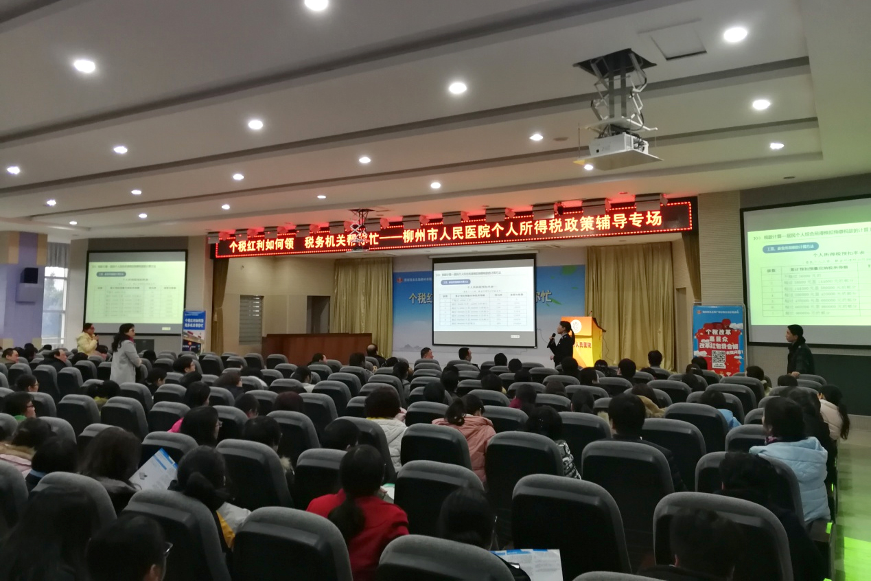 根據(jù)國務(wù)院的規(guī)定,2019年1月1日起施行新的《個人所得稅專項附加扣除暫行辦法》。為了讓醫(yī)務(wù)人員更好知曉政策,及時科學(xué)報稅,2019年1月4日下午,我院邀請國家稅務(wù)總局柳州市稅務(wù)局黨委書記、局長孟宗民及稅務(wù)骨干為全院職工進(jìn)行個人所得稅政策專場培訓(xùn)輔導(dǎo)。