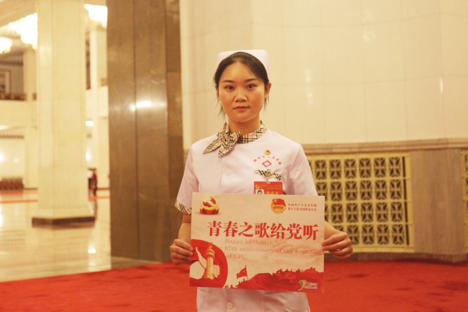 2018年6月26日至29日,中國共產(chǎn)主義青年團第十八次全國代表大會在北京召開。我院外科團支部書記、心胸外科護士王華作為廣西衛(wèi)生計生系統(tǒng)唯一的一名團十八大代表,與1500多名來自全國各地的青年代表參加了大會。