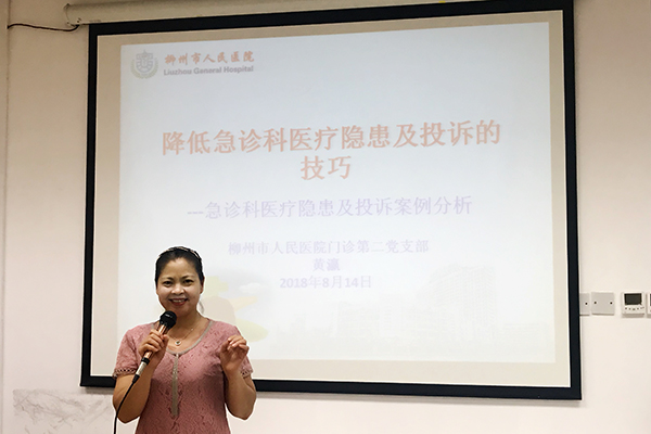 為貫徹落實《關于加強公立醫院黨的建設作的意見》,進一步加強公立醫院基層黨建工作,門診第二支部于2018年8月12日下午,組織急診科130名醫務人員開展“降低醫療隱患及投訴”專題培訓。門診第二黨支部書記、主任護師黃瀛作“如何降低急診科醫療隱患及投訴的技巧”的專題授課。