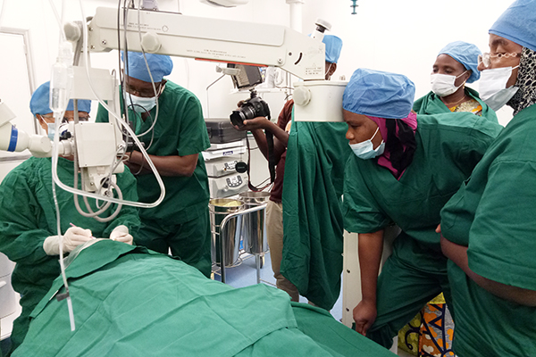 手術器械順利達到后,定于5月24日開展23G穿刺下硅油取出手術,這是尼日爾國內首例硅油取出手術,意味著尼日爾人民不用再專程飛往法國或突尼斯去做硅油取出手術,尼日爾總統新聞處得知此事,特別派記者前來現場進行采訪并進入手術室拍攝整個手術過程。