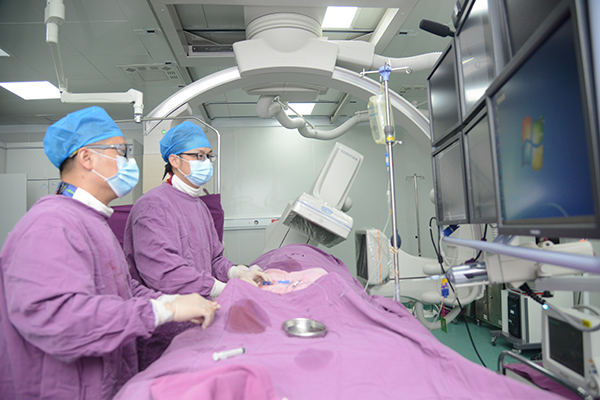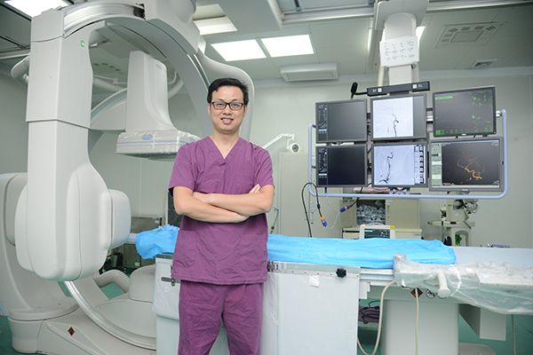 腦卒中的介入手術難度很大,那一根與頭發絲一般粗細的微導絲從患者的股動脈穿入,一直延伸到腦顱中,這需要一雙多么靈巧的雙手才能嫻熟的操作,而如果遇到躁動不安的病人,高醫生還要一邊顧忌他們的情緒,一邊進行手術。此外,腦卒中的介入手術不像一般的手術,它需要醫生一邊手術,一邊不停地到操作室里通過機器觀察病人的情況,一場手術下來,高醫生需要來來回回穿梭在手術室和操作室之間,他的每一個決定都是至關重要,不可馬虎。