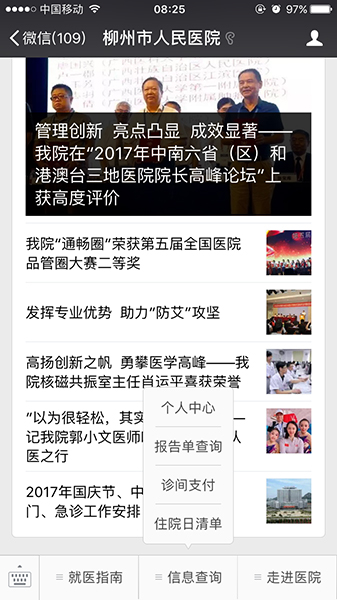 柳州市人民醫院微信公眾號還有很多功能:門診預約掛號、門診費用微信支付、檢驗報告查詢、智能導診、醫生介紹、出診安排查詢、健康百科、來院路線等,為患者提供更便捷、更流暢的就診流程。