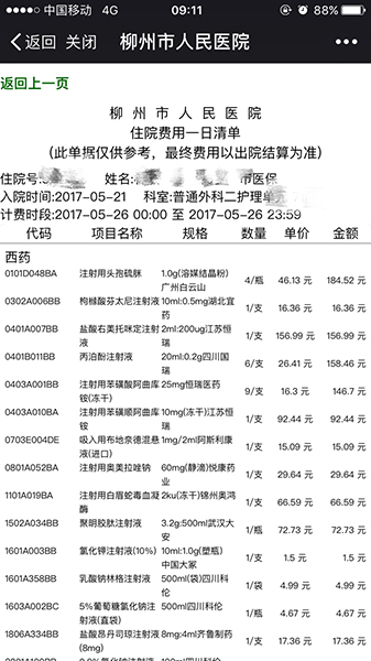 4)對于不會使用手機微信的患者,我院住院部一樓出院接待處可提供查詢“住院每日清單”的服務。