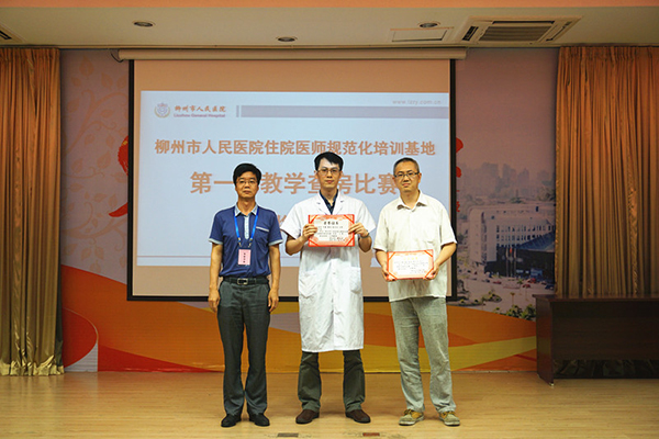 24支參賽團隊高手云集,各顯神通,比賽過程精彩紛呈。比賽制作的多媒體課件圖文并茂,動畫視頻生動有趣,通俗易懂;運用現實檢查儀器和模具進行示范操作,配合形象生動的講解,既直觀易懂又具觀賞性。比賽使用的病人,除了標準化病人,更有真正的患者愿意走下病床走上講臺積極配合比賽,和諧的醫患關系令人動容。授課者思路清晰、重點突出、層次分明,以問題為導向,充分培養學員臨床思維能力,有的參賽團隊還采用“頭腦風暴”教學討論的授課方式,充分激發學員學習熱情,令人耳目一新。經過激烈的角逐,最終來自柳州市人民醫院內科專業基地代表隊和柳鐵中心醫院骨科專業基地代表隊分別榮獲了一等獎。