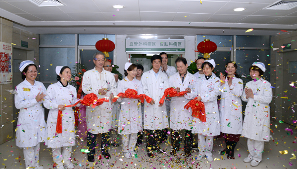 目前,新成立的血管外科和皮膚科病區總占地620平方米,共有床位40張。其中血管外科設有床位25張,專業醫師6名,均為專業碩士研究生畢業,可開展血管外科的相關開放及介入微創技術。皮膚科現在也有了獨立病房,病床15張,有3名副主任醫師,2名主治醫師和2名住院醫師,已形成一個獨立的有活力的醫療團隊。新病區的成立將能夠為兩個專科的患者提供更加及時有效的醫療服務。