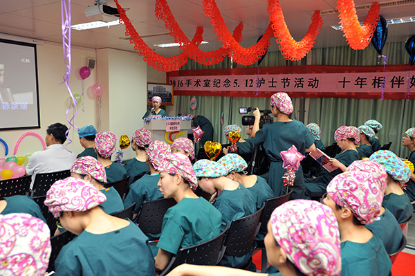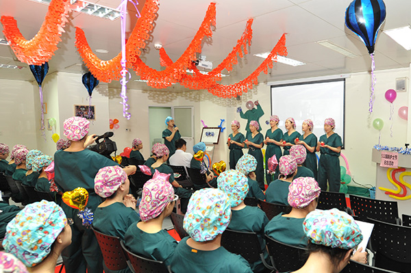 20年護齡的護士們在活動中獻上一曲《在我生命中的每一天》的合唱,以及年輕護士表演了《白衣天使》的配樂詩朗誦,用走心的活動表達“綠衣十年·不忘初心”,并對全院醫(yī)護人員的祝福。護士們非常開心而有意義的度過屬于自己的節(jié)日,也堅定了她們立志獻身護理事業(yè)的決心,增強護理團隊凝聚力和向心力。