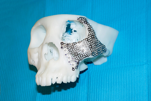 車禍傷患者因粉碎性骨折導致半邊臉塌陷畸形,醫(yī)師利用3D打印技術,將快速原型制造技術和鏡像技術相結合,制造出患者另一側的鏡像實體模型,完成個體化鈦網(wǎng)制作,應用于頜面部骨折修復術中,不僅成功為患者修復了顏面,而且還讓患者恢復了口腔功能,讓患者減少了創(chuàng)傷、降低了費用。