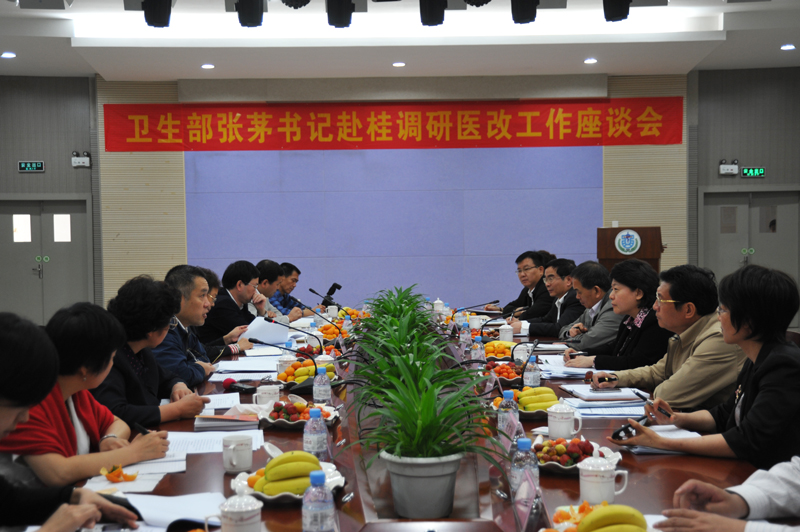 2011年11月24日上午,衛(wèi)生部黨組書(shū)記、副部長(zhǎng)張茅到我院就公立醫(yī)院改革工作進(jìn)行調(diào)研。自治區(qū)副主席李康、自治區(qū)辦公廳副主任吳建新、自治區(qū)發(fā)改委副主任、醫(yī)改辦主任韓慶東、自治區(qū)衛(wèi)生廳廳長(zhǎng)李國(guó)堅(jiān)、副廳長(zhǎng)甘霖,柳州市市長(zhǎng)鄭俊康、副市長(zhǎng)崔惠柳等領(lǐng)導(dǎo)陪同調(diào)研并參加了座談會(huì)。