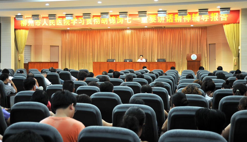 7月26日下午,院黨委舉辦講座,學習胡錦濤總書記在慶祝中國共產黨成立90周年大會上的重要講話精神,特邀柳州市委講師團副團長陳謹禮作專題輔導,全院共300余名黨員聽取了講座。