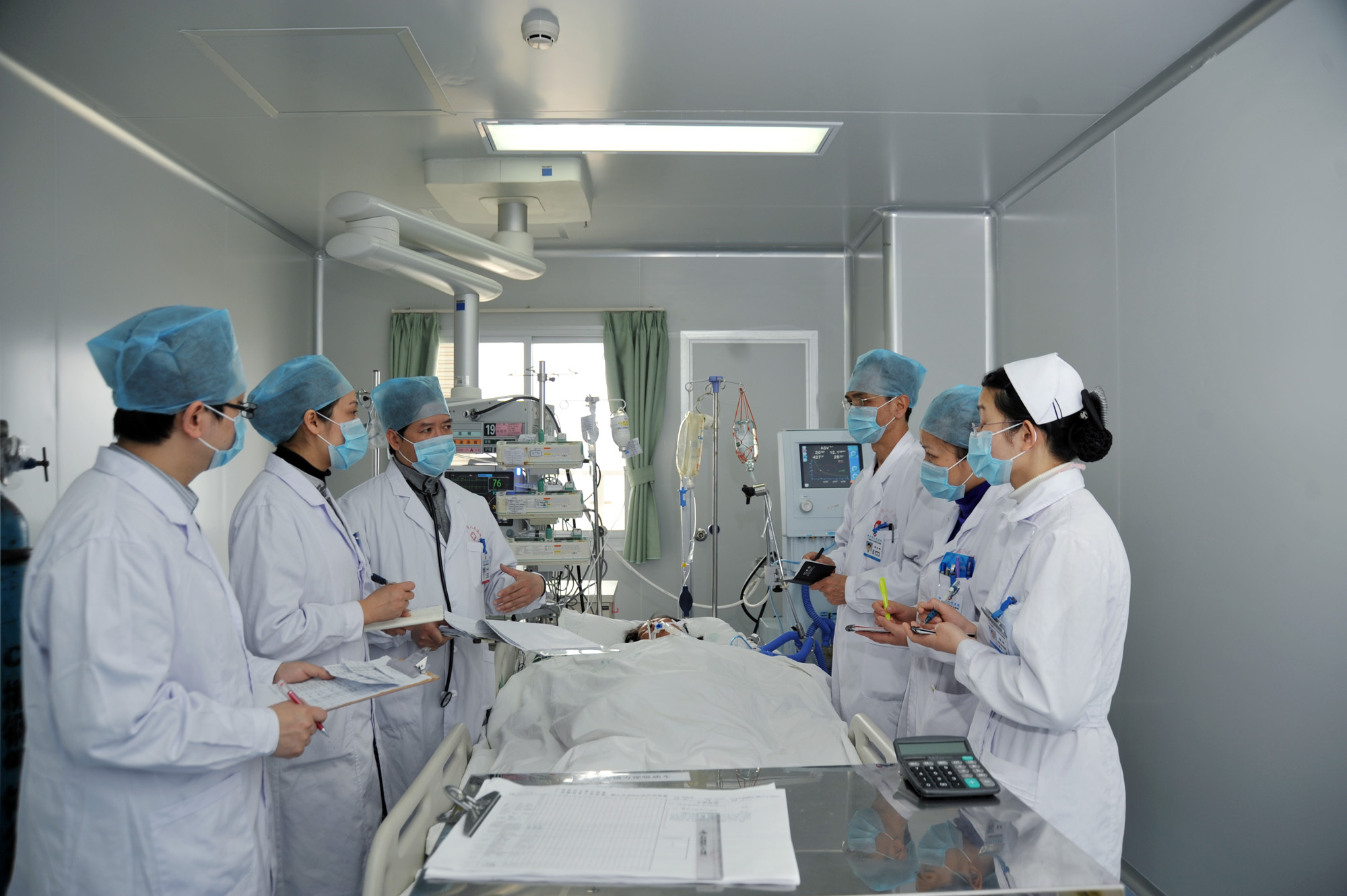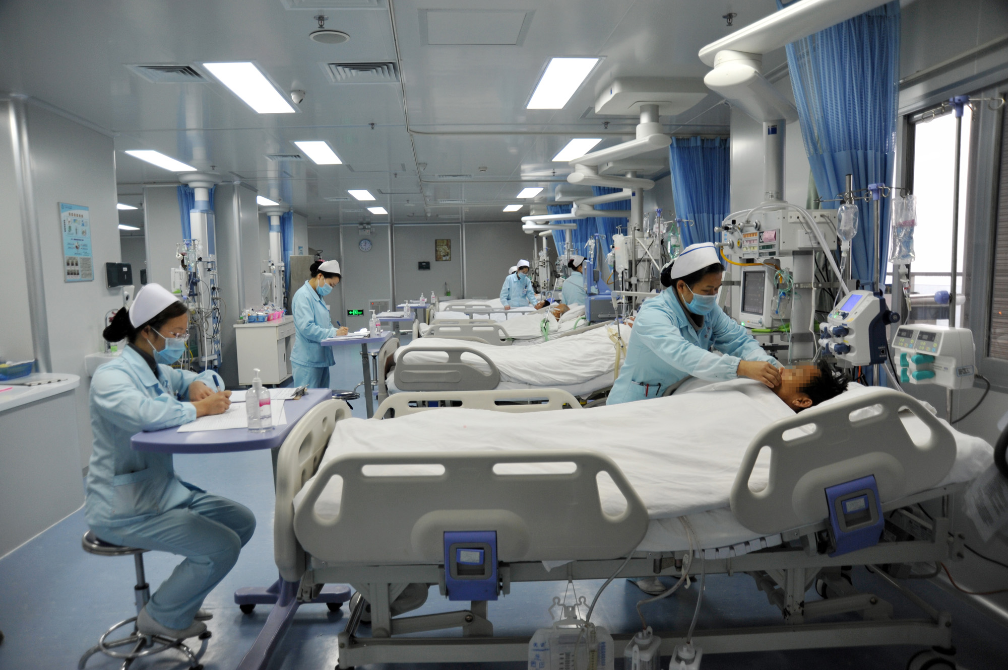 病房內所配備的醫療設備,90%以上為進口的,每床擁有一臺多功能全自動有創呼吸機、兼有創和無創等功能多參數監護儀;各種高尖端的床旁檢查和治療設備,如:床旁血液凈化治療儀(CRRT)、心電與除顫儀、主動脈球囊反博器、纖維支氣管鏡、升、降溫毯、床旁x光機、床旁超聲、床旁血氣分析、電解質測定等等,為危重病人的快速救治提供了有力保障。全病房傳呼急救系統,使醫務人員能對病情變化作出最快反應,迅速到位,避免出現搶救“死角”,確?;颊甙踩?。