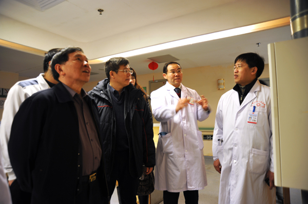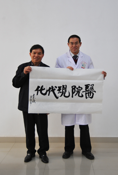 2月12日上午,廣西醫(yī)科大學(xué)校長黃光武一行6人到我院參觀指導(dǎo)。黨委書記胡世紅、黨委副書記廖慶蘭、院長助理李俊杰等領(lǐng)導(dǎo)接待了黃校長一行。雙方就醫(yī)院管理經(jīng)驗進(jìn)行了友好交流,黃校長一行參觀了我院門診大廳醫(yī)院規(guī)劃沙盤、門診內(nèi)科診室、耳鼻喉科病房、教學(xué)樓及學(xué)生公寓,了解了血檢1小時出報告自助打印系統(tǒng)、電腦自動叫號取藥、一卡通使用情況等。參觀完后,黃校長為我院即將到來的85周年院慶題詞為:“醫(yī)院現(xiàn)代化”。