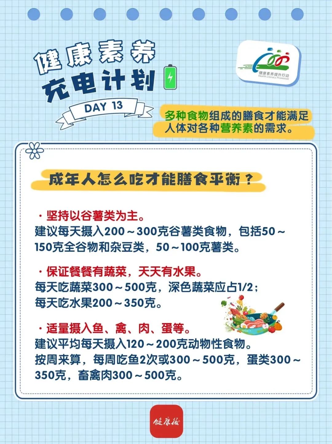 膳食應以谷類為主,多吃蔬菜、水果和薯類,注意葷素、粗細搭配,不偏食,不挑食。