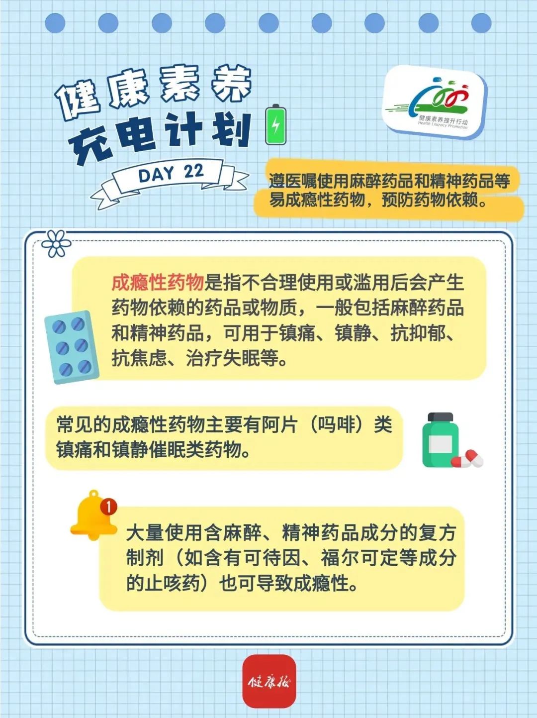 遵醫囑使用麻醉藥品和精神藥品等易成癮性藥物,預防藥物依賴。
