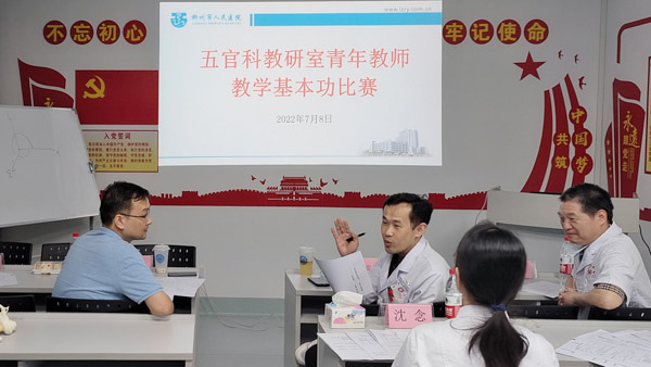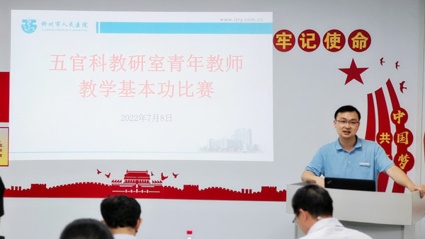 為進一步提高青年教師教學能力和水平,夯實青年教師教學基本功,提高課堂教學質量, 近日,柳州市人民醫院五官科教研室2022年教學基本功比賽拉開了帷幕,前期經過各科室初賽評比,最終有5名青年教師脫穎而出,站在了決賽的賽場。