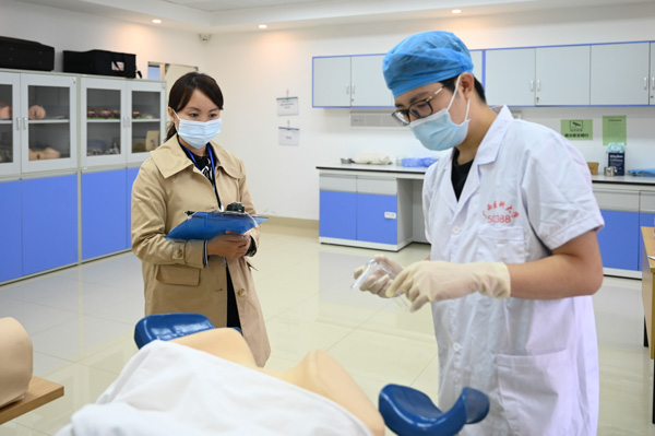 臨床教學中期檢查是對醫院教學工作的一次全面檢閱,檢查內容包括實習生在我院實習期間的生活、紀律和學習等情況。各院校檢查組專家還考核了實習生臨床理論、基本技能、抽查了實習生手寫大病歷、檢查科室的教學臺賬,與我院教學管理人員及實習生進行了座談交流,全方位了解我院實習任務的完成情況,均對我院實習工作落實情況表示滿意。檢查期間,各院校檢查組還參觀了我院臨床技能培訓中心、學生公寓、圖書室等教學場地和相關設施。