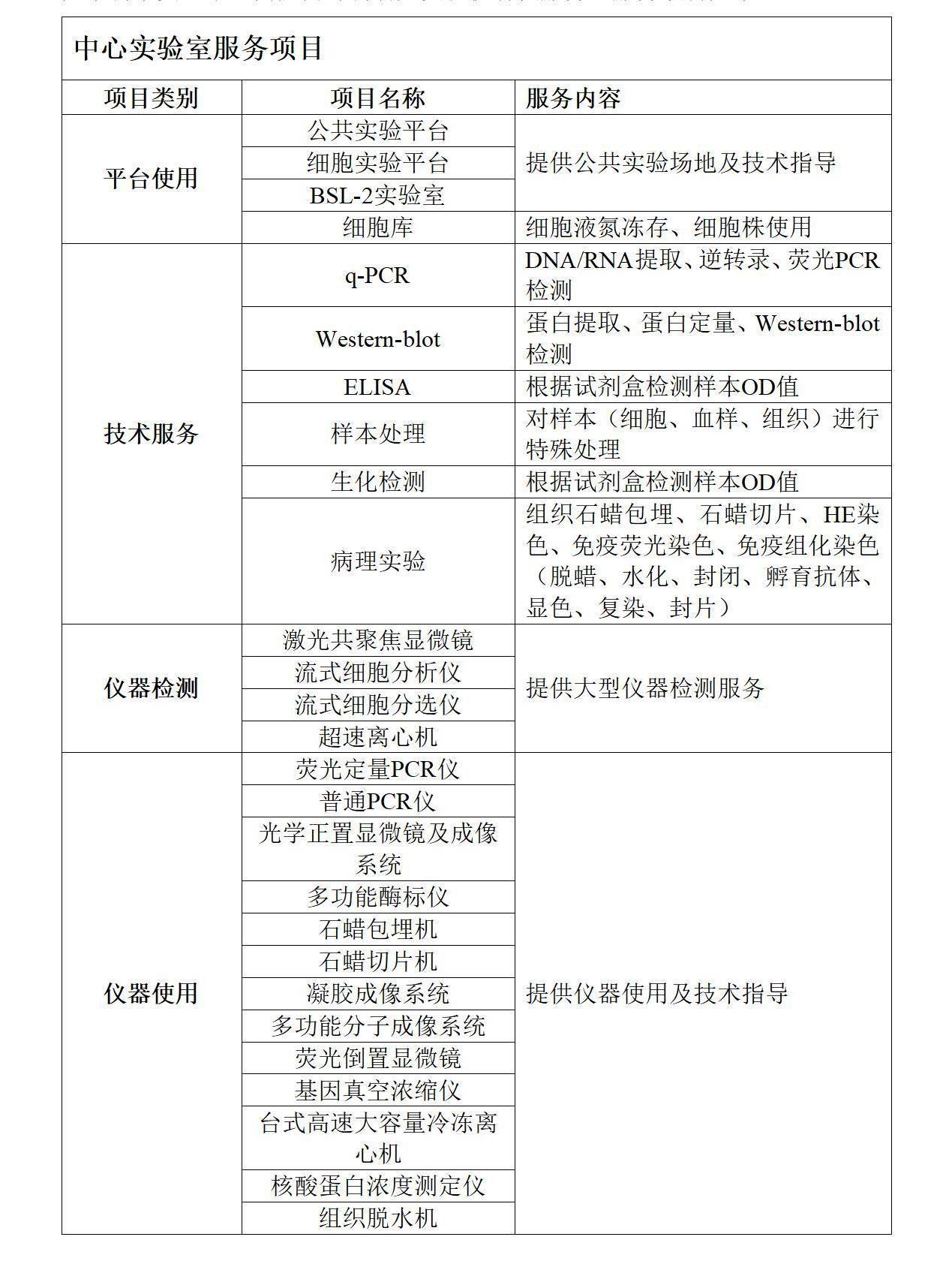 醫(yī)學(xué)科學(xué)實(shí)驗(yàn)中心向院內(nèi)外科研人員提供有償服務(wù),服務(wù)項(xiàng)目如下: