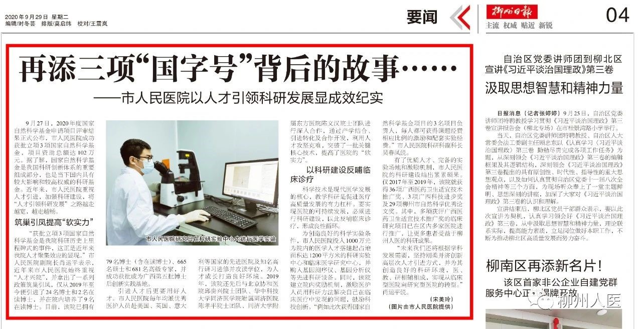 【喜訊】再添三項國家自然科學基金項目——柳州市人民醫(yī)院以人才引領(lǐng)科研發(fā)展顯成效