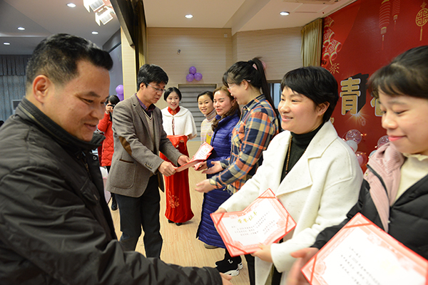 副院長潘光棟代表醫(yī)院領(lǐng)導(dǎo)班子向各位老師、住培學(xué)員、實習生、進修生送上最誠摯的新春問候,并感謝各位老師、學(xué)員長期以來對我院教學(xué)工作的支持和辛勤付出。教學(xué)部主任唐建國宣讀了《柳州市人民醫(yī)院第一屆住院醫(yī)師規(guī)范化培訓(xùn)臨床技能競賽獲獎人員的通知》以及《柳州市人民醫(yī)院關(guān)于表彰2018年度“優(yōu)秀學(xué)員”及“先進帶教科室”的決定》,授予王利平等32名學(xué)員為優(yōu)秀住院醫(yī)師;彭昳媛等20名學(xué)員為優(yōu)秀實習生;評選臨床病理科、放射科、麻醉科、門診部等12個科室為先進住培專業(yè)基地或帶教科室;副院長潘光棟、紀委書記廖流濤、總會計師何志洪、教學(xué)部主任唐建國以及各專業(yè)基地、教研室領(lǐng)導(dǎo)及嘉賓為獲獎人員頒獎。