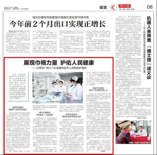 近日,自治區婦聯公布了2022年度廣西三八紅旗集體名單,柳州市人民醫院護理部榜上有名。這支女職工人數近1700人、占比超過團隊總人數的93%隊伍,緣何能成為我市醫療衛生系統中唯一獲此殊榮的集體?且看柳州市人民醫院護理團隊如何展現巾幗力量,護佑人民健康——
