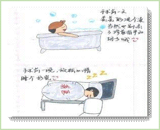2.手術(shù)前一日洗澡,或擦拭手術(shù)部位皮膚,保持清潔。術(shù)前一日晚上好好休息,注意保暖,按護士的術(shù)前宣教禁食禁飲。