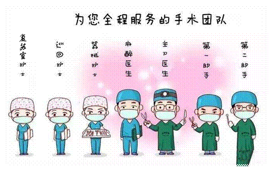 1.我們的團隊:手術(shù)醫(yī)生、麻醉醫(yī)生和手術(shù)室護士。