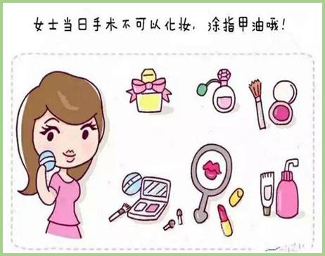4.在手術(shù)當日盡量素顏,避免涂抹指甲油。化妝會影響醫(yī)生對手術(shù)患者面色的判斷,指甲油膠會影響血氧儀的數(shù)據(jù)監(jiān)測。