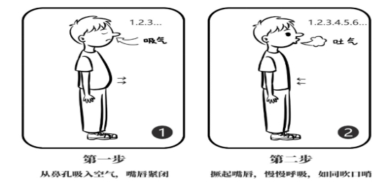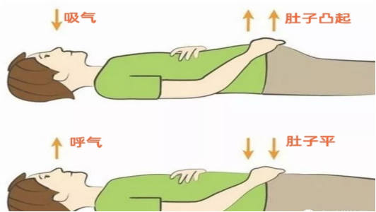 1.腹式呼吸:經鼻吸氣,從口呼氣,吸氣時上腹部鼓起,呼氣時腹部凹陷,上胸廓保持最小活動幅度或不動。每次5-10次,每天1-2次。