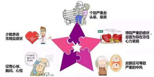 要識別心房顫動,我們需留意它的常見癥狀,大部分房顫患者表現為心慌心悸、胸悶胸痛、呼吸困難、頭暈黑朦、乏力、暈厥等癥狀。并且在房顫發作時,患者心房收縮功能減弱,可能導致血液逐漸凝結形成附壁血栓,脫落后堵塞血管,阻斷腦部供血誘發中風。此外,心房顫動還可能導致心力衰竭,嚴重影響患者的生活質量和預期壽命。但也有部分房顫患者無任何癥狀,這也是為何該病經常被忽視的原因之一,這可能導致卒中或死亡等嚴重后果,無聲息的危害患者的健康,所以又稱為“隱形殺手”。