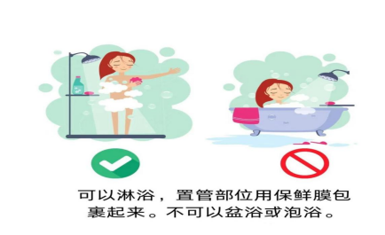 1.養成良好的個人衛生習慣,注意保持日常衛生,定期更換衣物,保持導管周圍皮膚清潔、干燥。避免導管處皮膚和導管末端污染,不可泡澡,建議沐浴方式可采用上擦下沖洗的方法,擦拭身體時,將留置導管和皮膚出口處使用專用的防水敷料密封,以免導管打濕增加感染風險。