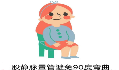 2.股靜脈插管患者避免蜷腿、避免長時間的坐立以免導管打折和脫出,股靜脈置管者下肢彎曲不宜超過90度,勿過多下床活動。股靜脈置患者在穿脫褲子時的問題,避免拉扯脫出。