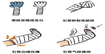 5.預(yù)防壓瘡,石膏固定后,如覺得某點(diǎn)有固定的疼痛,應(yīng)去醫(yī)院檢查,避免局部皮膚受石膏壓迫而潰爛。