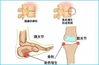 骨質增生是人體骨骼老化過程中伴隨的一種自然退化現象,骨關節的接觸面被覆關節軟骨,隨著年齡的增長,由于長期承受壓力,軟骨會受到磨損,下骨增厚、硬化,并產生關節邊緣贅生物,其中增生表面尖銳的稱為骨刺。