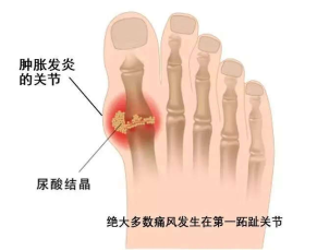 這是痛風最典型的階段,通常“突然發(fā)作”,很多人在半夜被疼醒。常見的發(fā)作部位是第一跖趾關節(jié)(占一半以上),其次是踝關節(jié)、膝關節(jié)、手部等關節(jié)。發(fā)作時的癥狀很明顯: