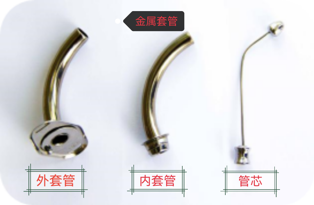 確定帶的是什么氣切套管?目前國內(nèi)常見的氣切套管一般分為有氣囊和無氣囊兩種,有氣囊的一般為塑料材質(zhì),而無氣囊的一般為金屬鈦合金材質(zhì)。有氣囊的氣切套管主要針對需要上呼吸機輔助通氣和那些吞咽障礙、誤吸發(fā)生率較高的患者。金屬套管內(nèi)芯便于拆卸,便于清洗消毒,其形成痰痂造成堵管的風(fēng)險明顯低于塑料套管,故對于沒有吞咽障礙,誤吸風(fēng)險相對低的患者我們居家?guī)Ч軙x擇金屬套管,金屬套管由外套管、內(nèi)套管、和管芯組成。