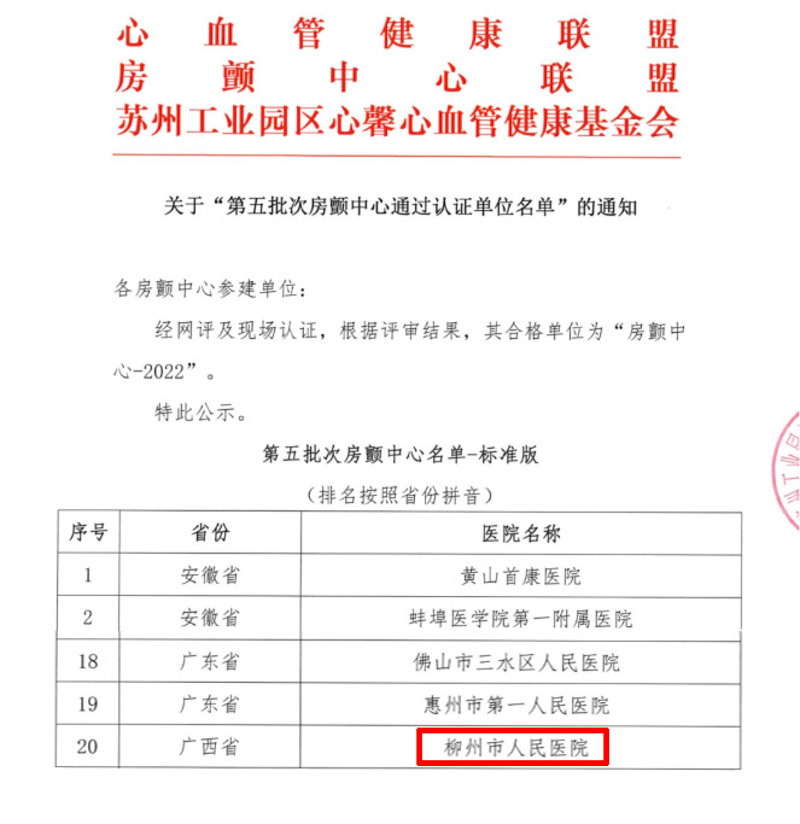 • 【喜報】柳州市人民醫院房顫中心順利通過“中國房顫中心(標準版)”認證