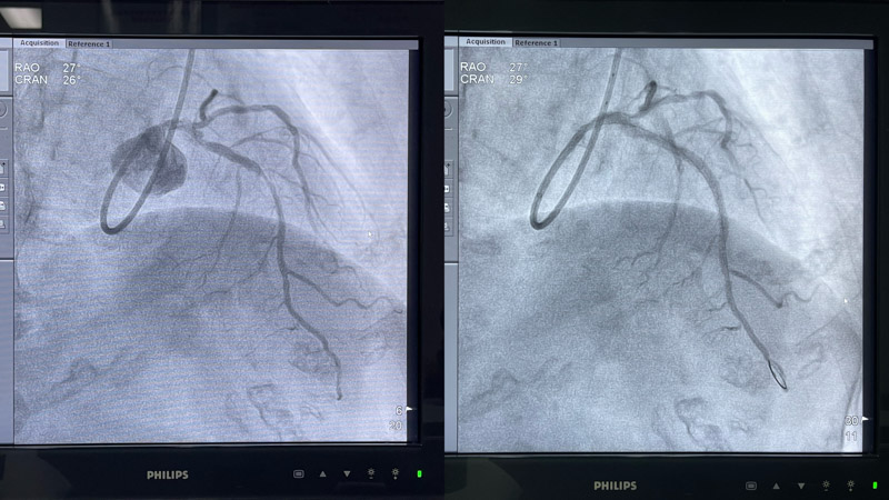 75歲的高齡患者莫阿姨今年九月初曾因突發胸痛在外院做了支架置入術,11月28日,又出現了胸痛癥狀,遂來到了柳州市人民醫院。經復查患者冠脈造影提示前降支嚴重鈣化、迂曲,前降支近段原支架嚴重膨脹不全,殘余狹窄明顯,如果不及時處理,會出現支架內血栓、支架內再狹窄等潛在風險,嚴重威脅患者生命!