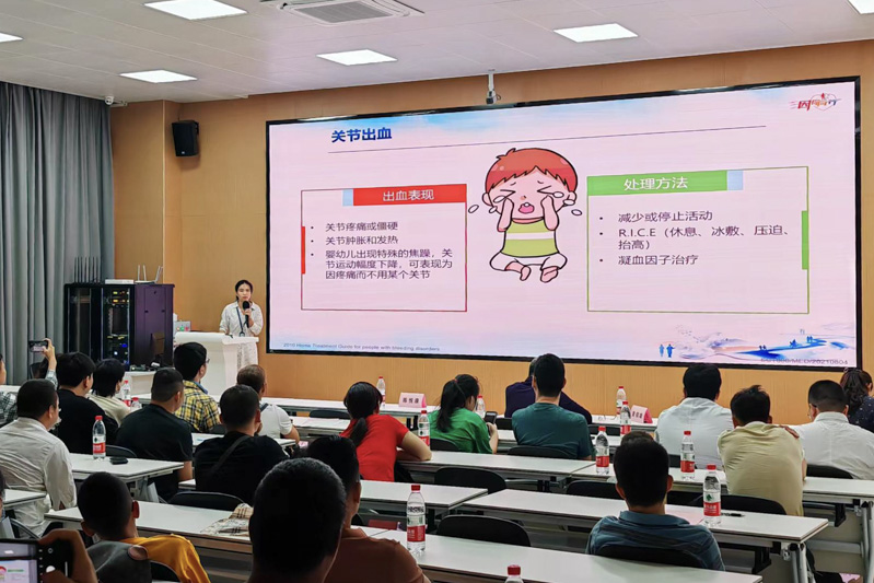 活動中,柳州市人民醫院血液內科王健琨副主任醫師俗易懂地講解了什么是血友病,如何進行標準預防治療,從而達到“預防關節/肌肉出血,保護好關節功能”的目的,希望血友病患者能夠規范進行預防治療,防患于未然。黃錦雄主任醫師為大家講解了如何預防出現凝血因子抑制物,預防治療獲益有哪些?全程管理對于血友病患者改善生存質量和生活質量的重要性。陳思思護士長講解了血友病患者居家生活注意事項,如何做好預防治療。