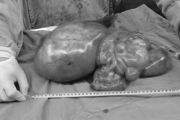 近日,柳州市人民醫院胃腸外科在麻醉科、手術室及輸血科的通力配合下順利完成了一例罕見的腹腔巨大腫瘤切除術,切除的腫瘤大小約37×28cm,重達15斤!