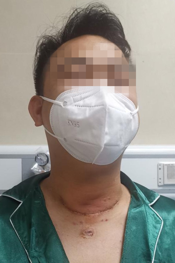 患者是一名32歲的青年男性,1年前發現頸部出現一個雞蛋大小腫物,一直沒太在意,誰知腫瘤越長越大,又長在頸部這樣特殊的位置,對外觀及日常生活影響越來越大,在當地醫院檢查后發現原來是甲狀腺長了腫瘤,于是患者來到柳州市人民醫院。