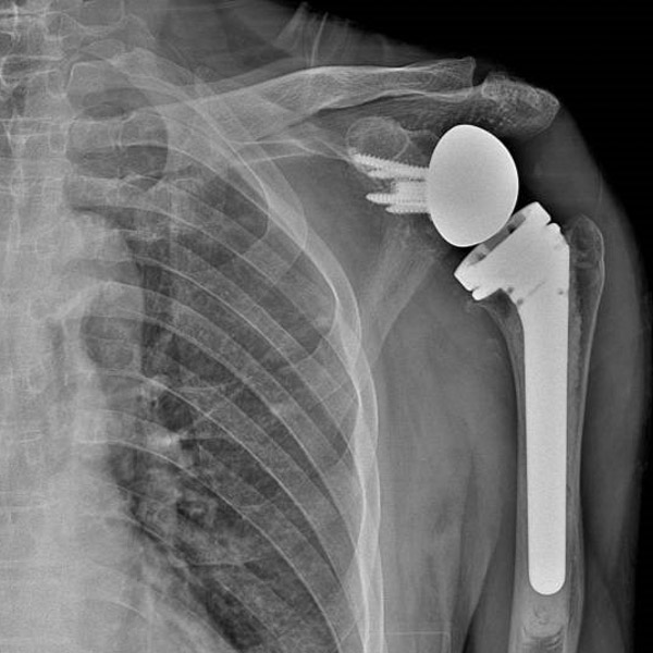 “這種情況保守治療的效果不會太好,為最大程度恢復肩關節功能,就需要為患者進行左側反向全肩關節置換手術。”創傷骨科副主任舒文介紹,反向全肩關節置換手術是將組成整個肩關節的肱骨頭、肩胛骨關節盂全部換成人工的,并將肱骨頭與肩胛骨關節盂位置對調——假體的“肱骨頭在上、肩胛骨關節盂在下”,和人體真正的肩關節方向相反。這是近年國際上用來治療巨大不可修復肩袖損傷等復雜肩關節疾病的最新、有效技術。