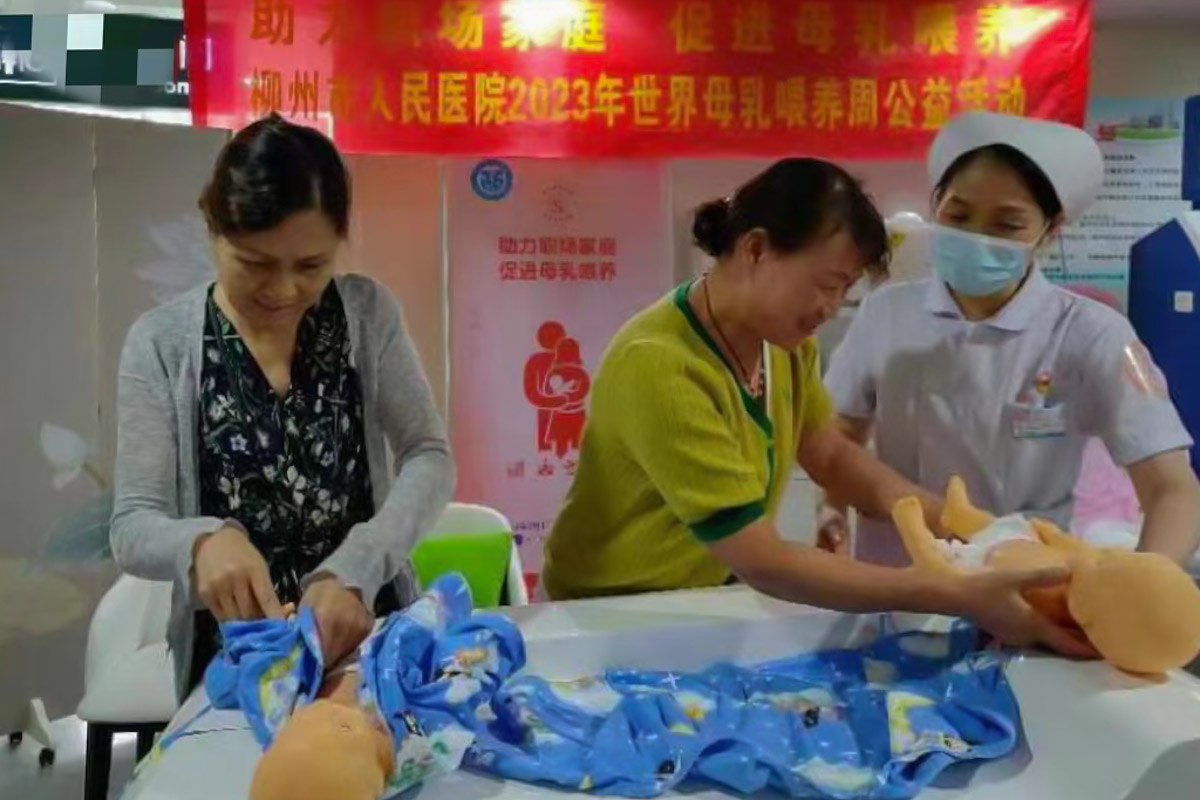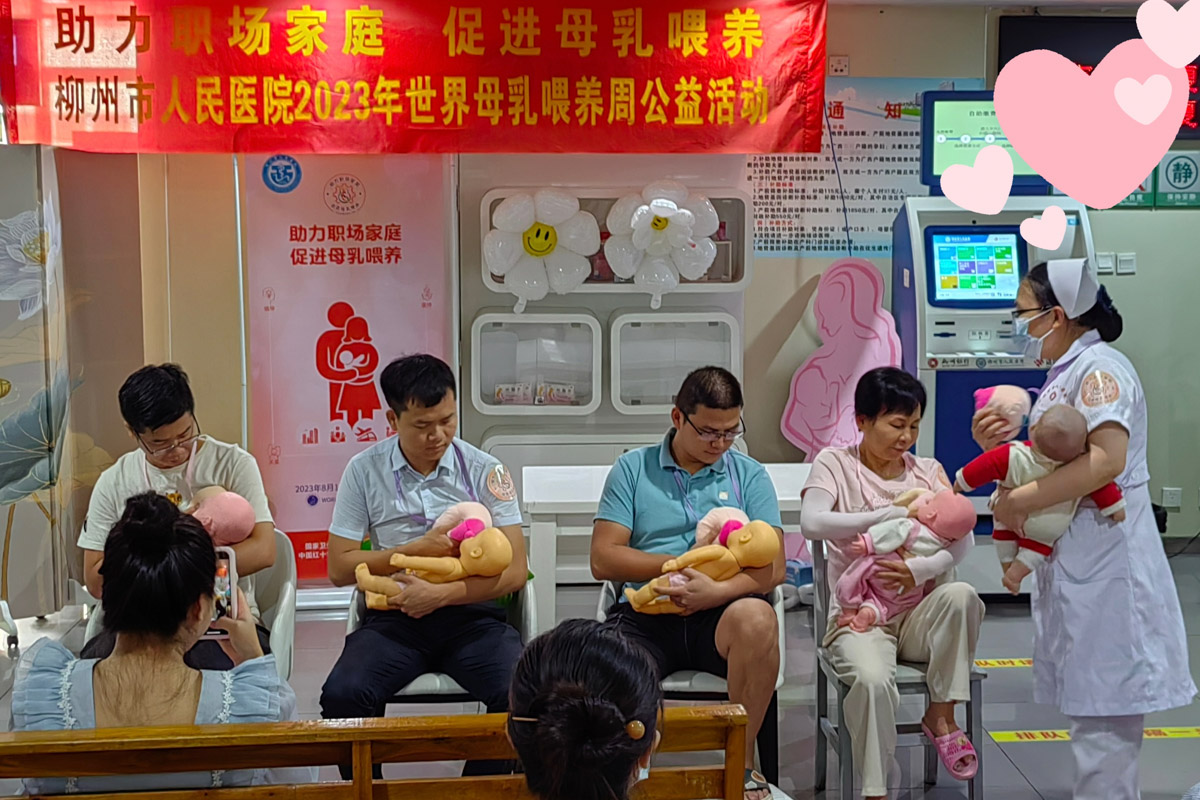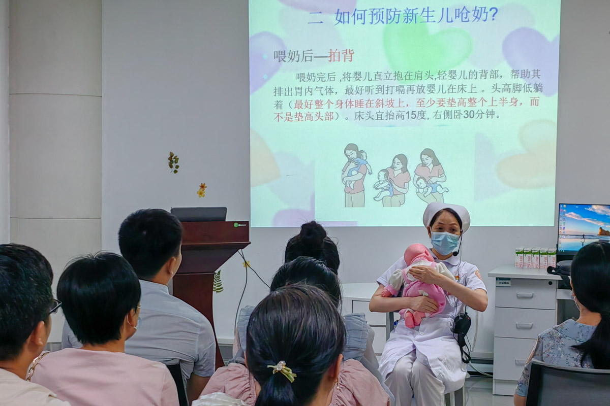 8月1日上午,在柳州市人民醫院孕婦學校,柳人醫產科世界母乳喂養周系列活動正式啟動。30多名準媽媽準爸爸整齊坐在教室里,跟著醫護人員學習新生兒嗆奶的處理方法。