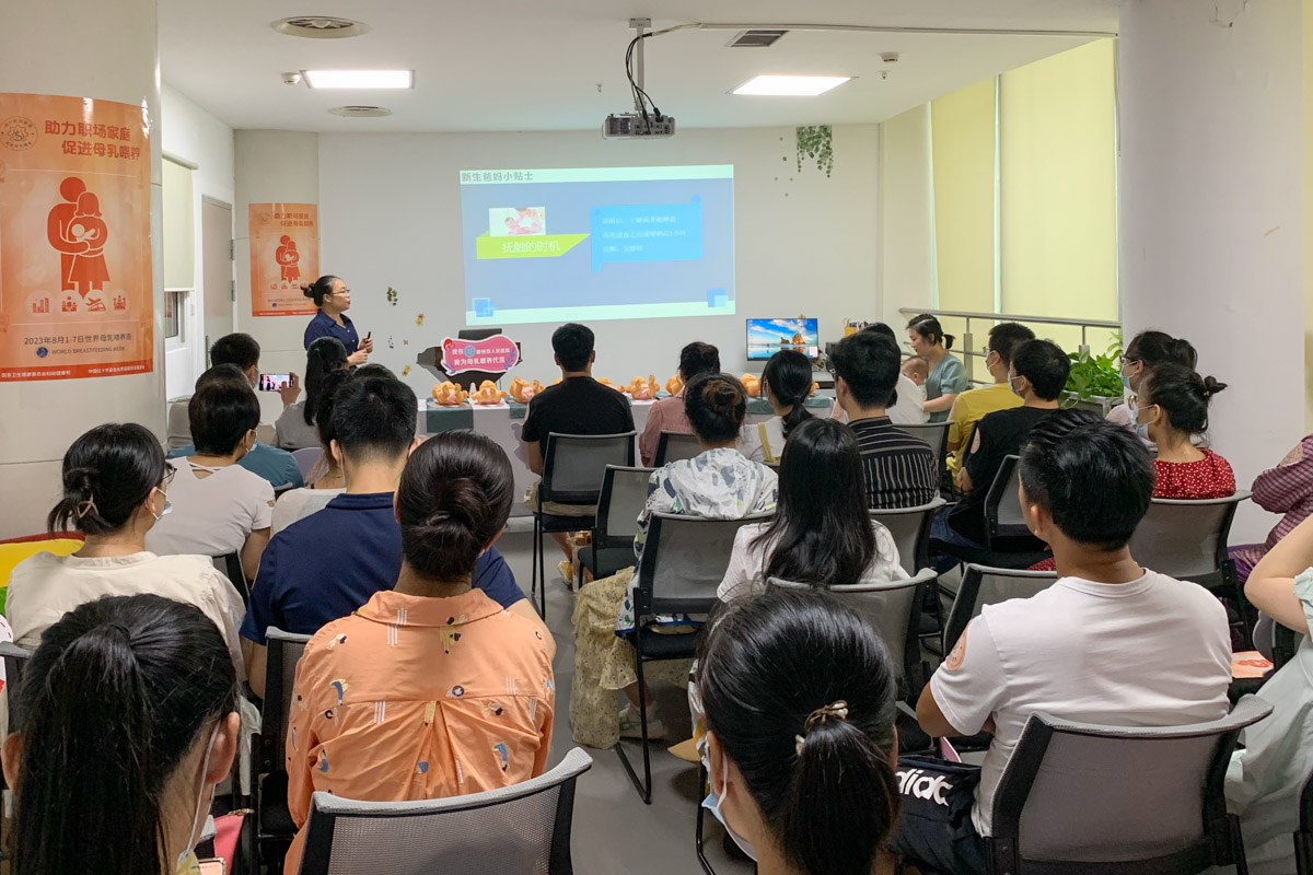 8月2日上午,孕婦學校母乳喂養周系列活動持續開展,30余名準媽媽準爸爸參與活動。